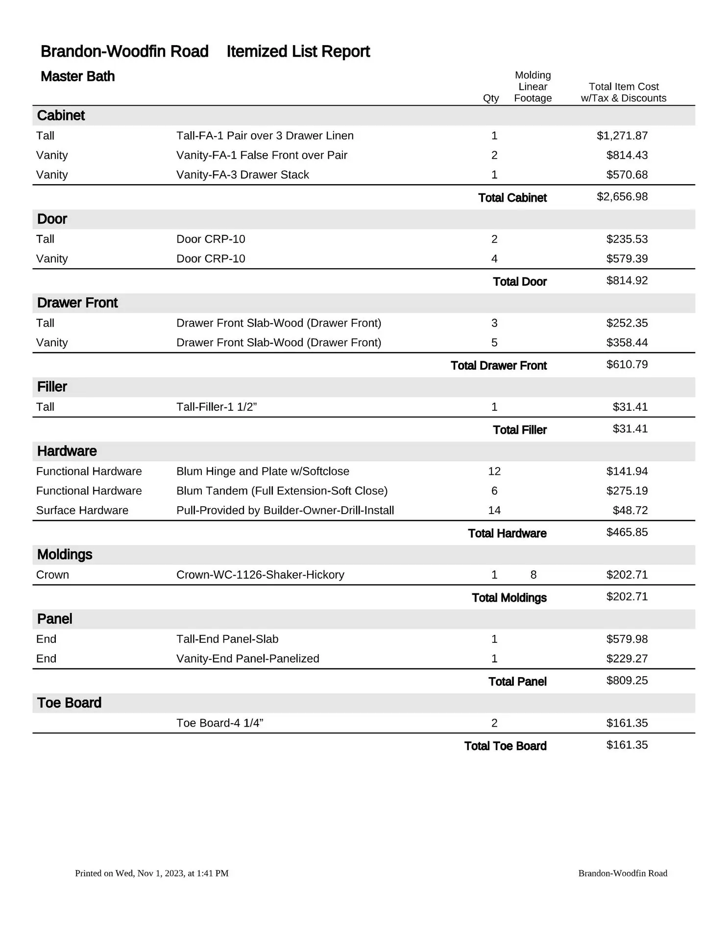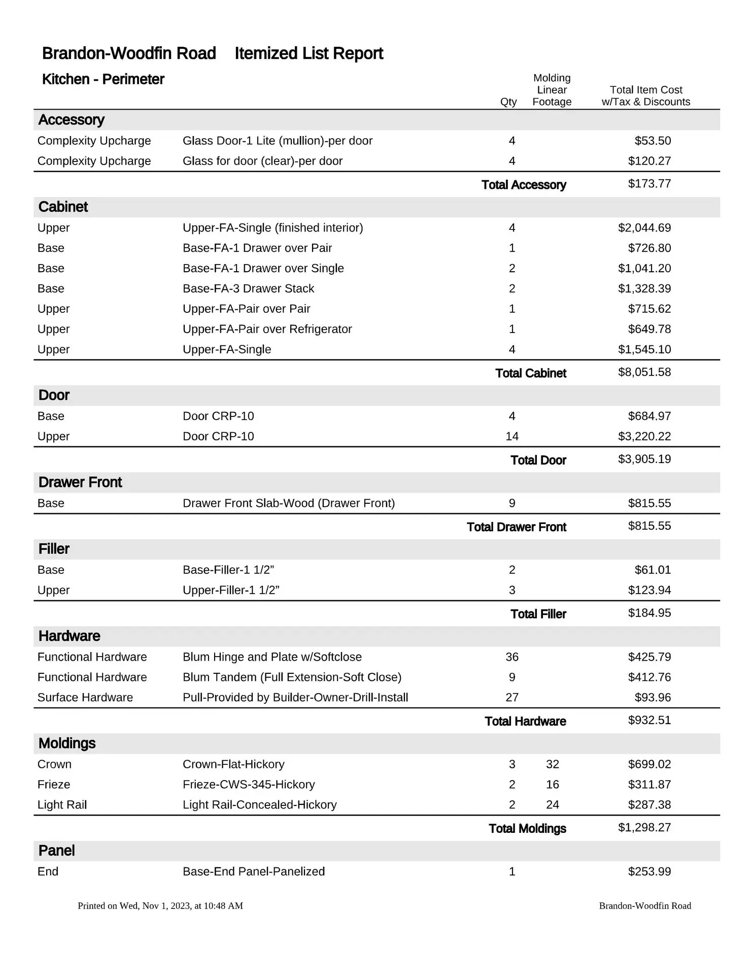 At this point, we will provide you with a formal estimate. These estimates are very detailed and will provide you with the information you need to make a fully educated decision about your custom cabinetry requirements. We are more than happy to provide several alternate pricing scenarios, so please do not hesitate to ask. If you think you might want to upgrade to an applied mold door, upgrade the drawer box, change from slab to raised panel ends, or any other change, addition or subtraction, we will be more than happy to accommodate those change requests (this is the time to do so, not after the manufacturing process has been put into motion).