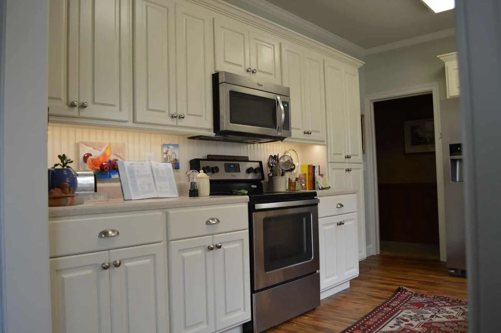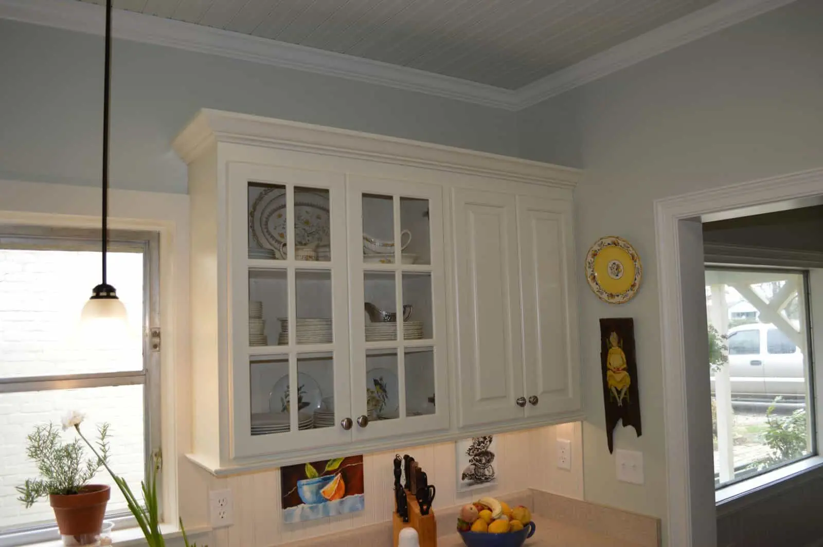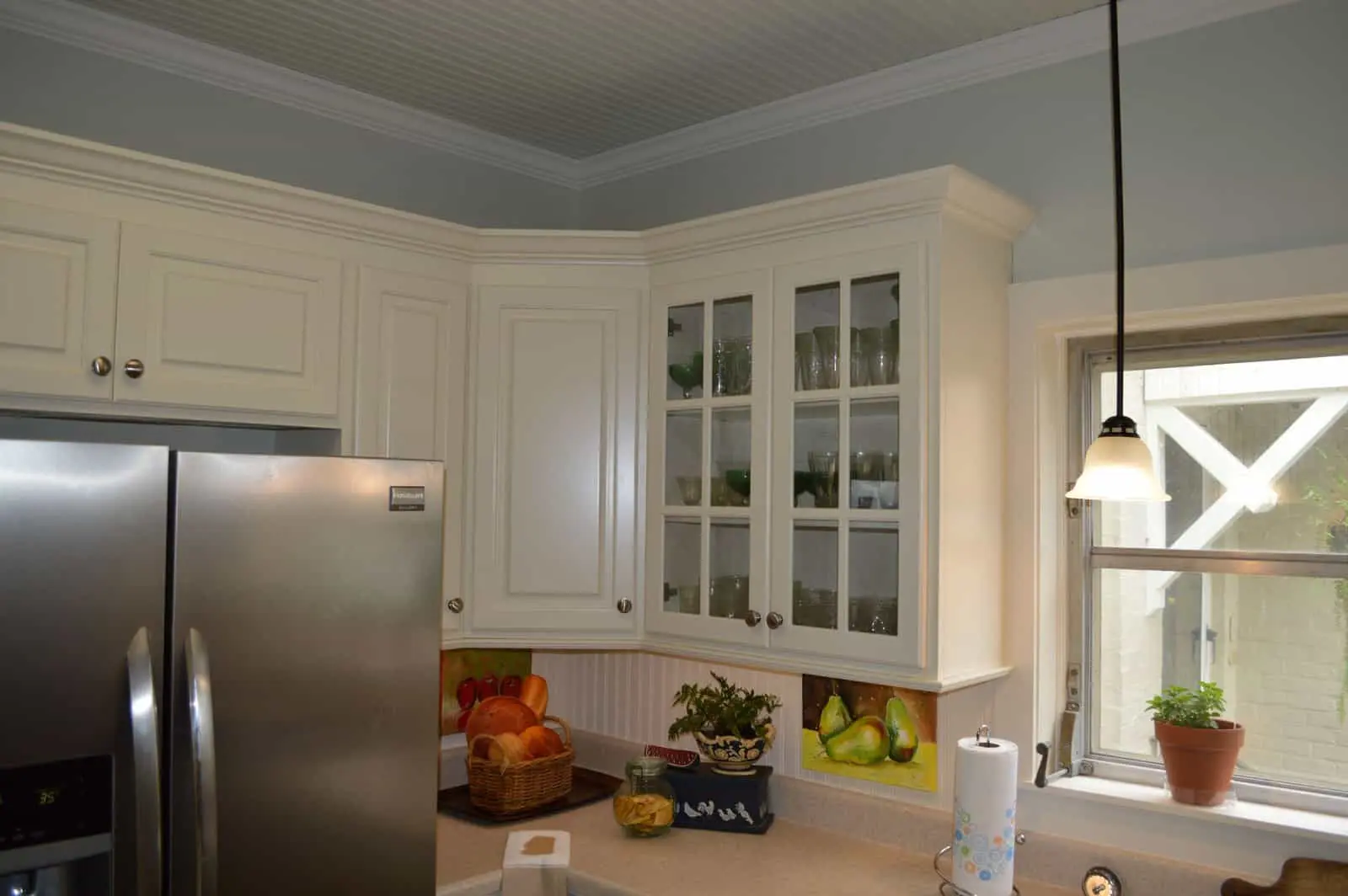 Martha Stewart says that the Traditional style of cabinetry was inspired by the golden age of Europe, and is the most formal cabinetry style, often embellished with ornately carved details. The doors often have raised panels, sometimes featuring an arched design. Traditional cabinets are often found in rich color stained woods or painted woods or composites, but might also be distressed as well as treated with an antiquing and/or glazing effect.